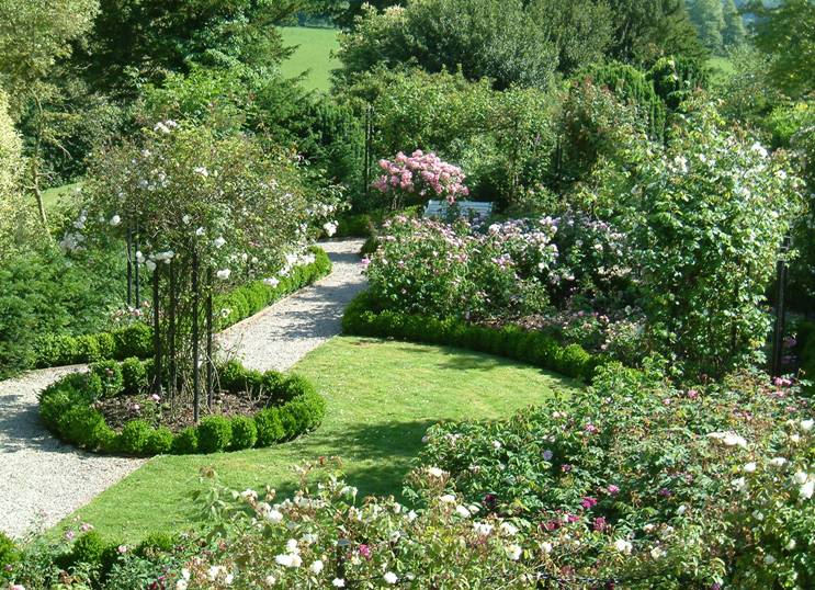 Unfortunatly the hedges caught box blight and the roses grew old and could not be repaced due to 'Rose replant disease'